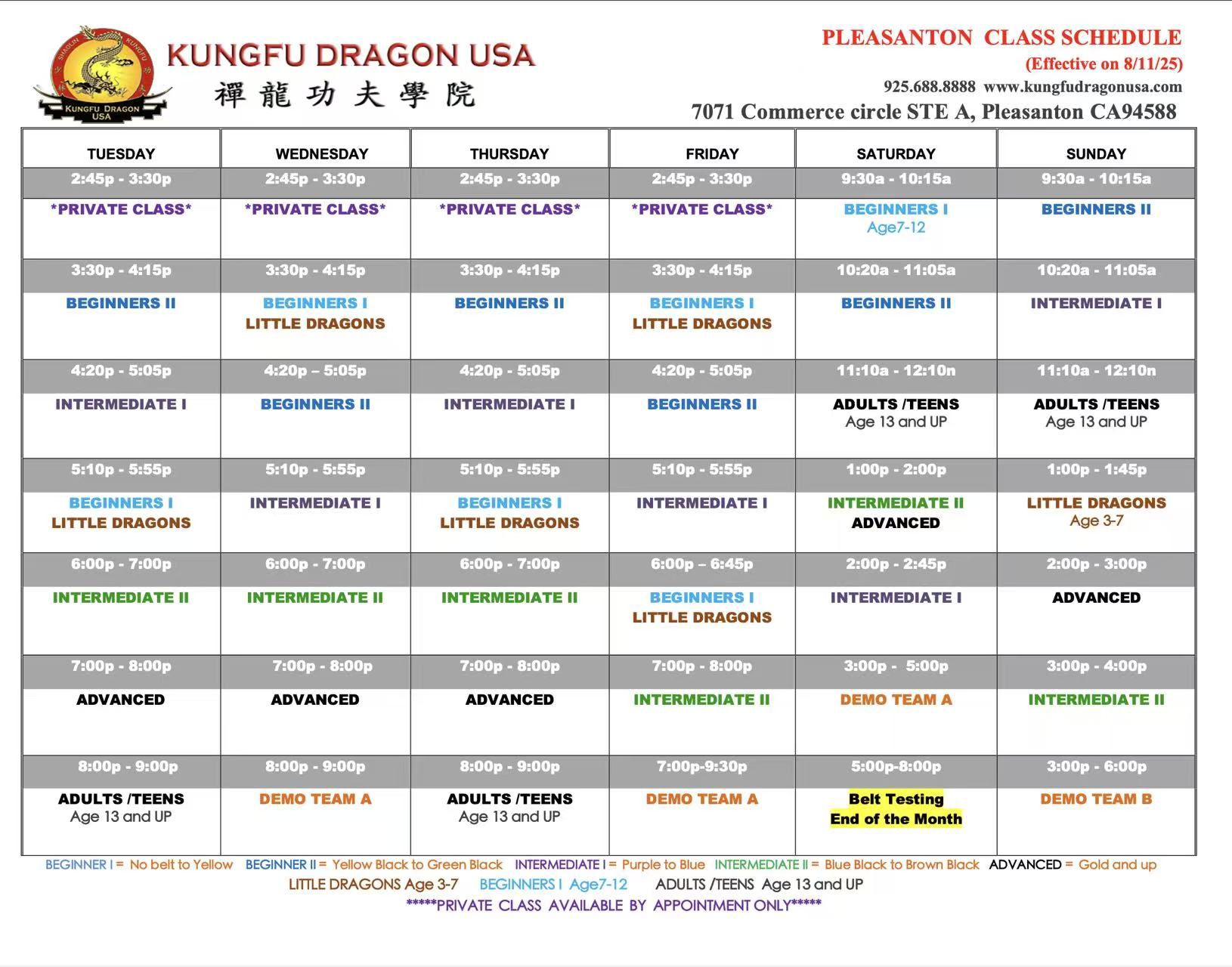 ALL CLASSES ARE SUBJECT TO CHANGE WITHOUT NOTICE.